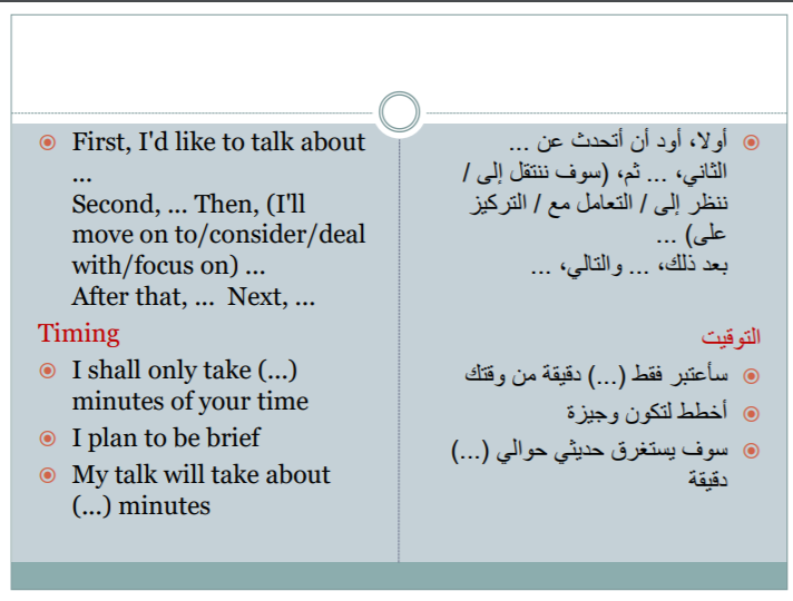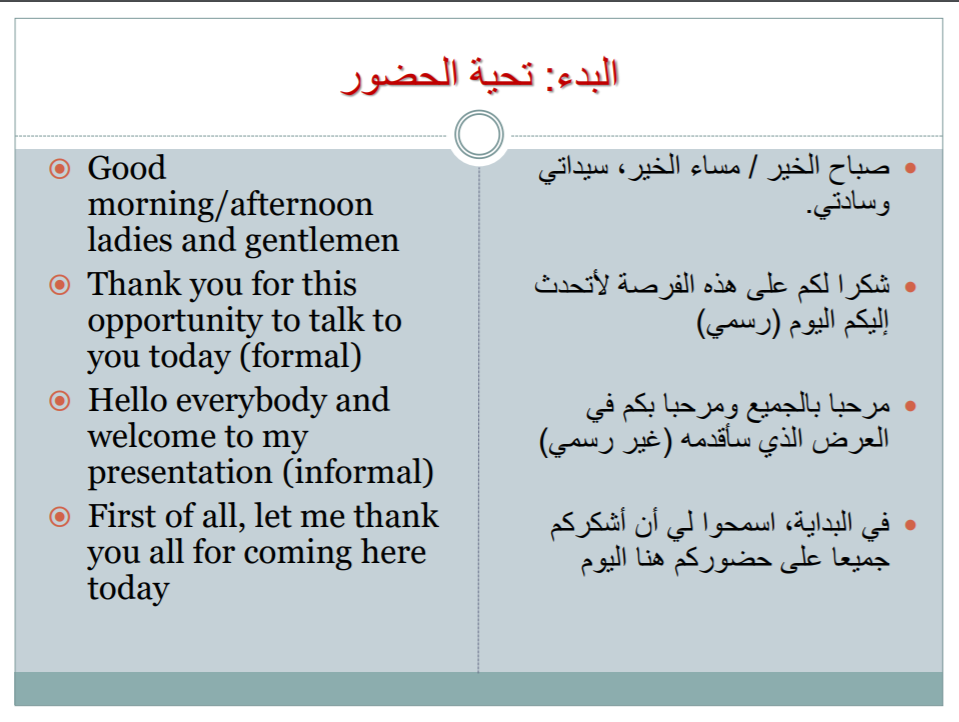 BAP 457-Presentation Skills Here some notes from my lecture ๐น I hope this can help you to be a good presenter! Presentation Arabic Phrase๐ Share this: Share on X (Opens in new window) X Share on Facebook (Opens in new window) Facebook Like Loading...